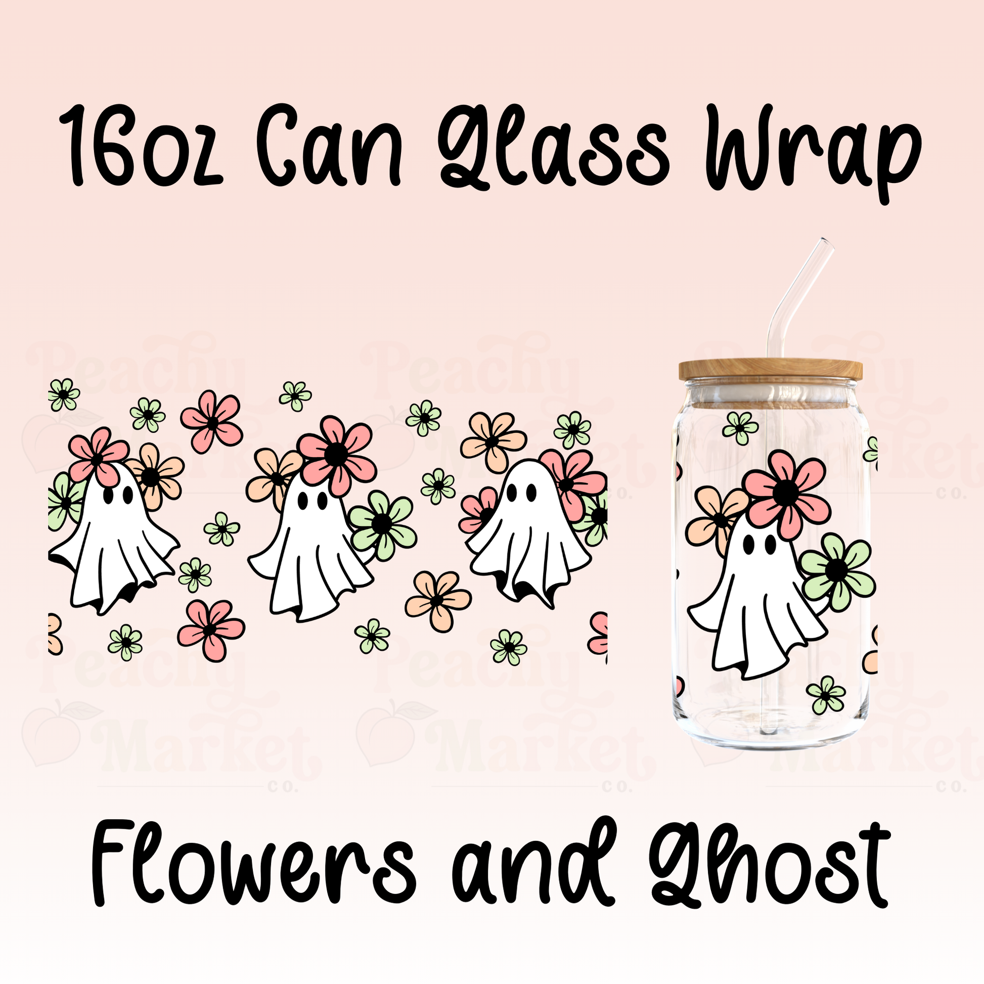 16oz Can Glass Wrap Flowers and Ghost Vinyl