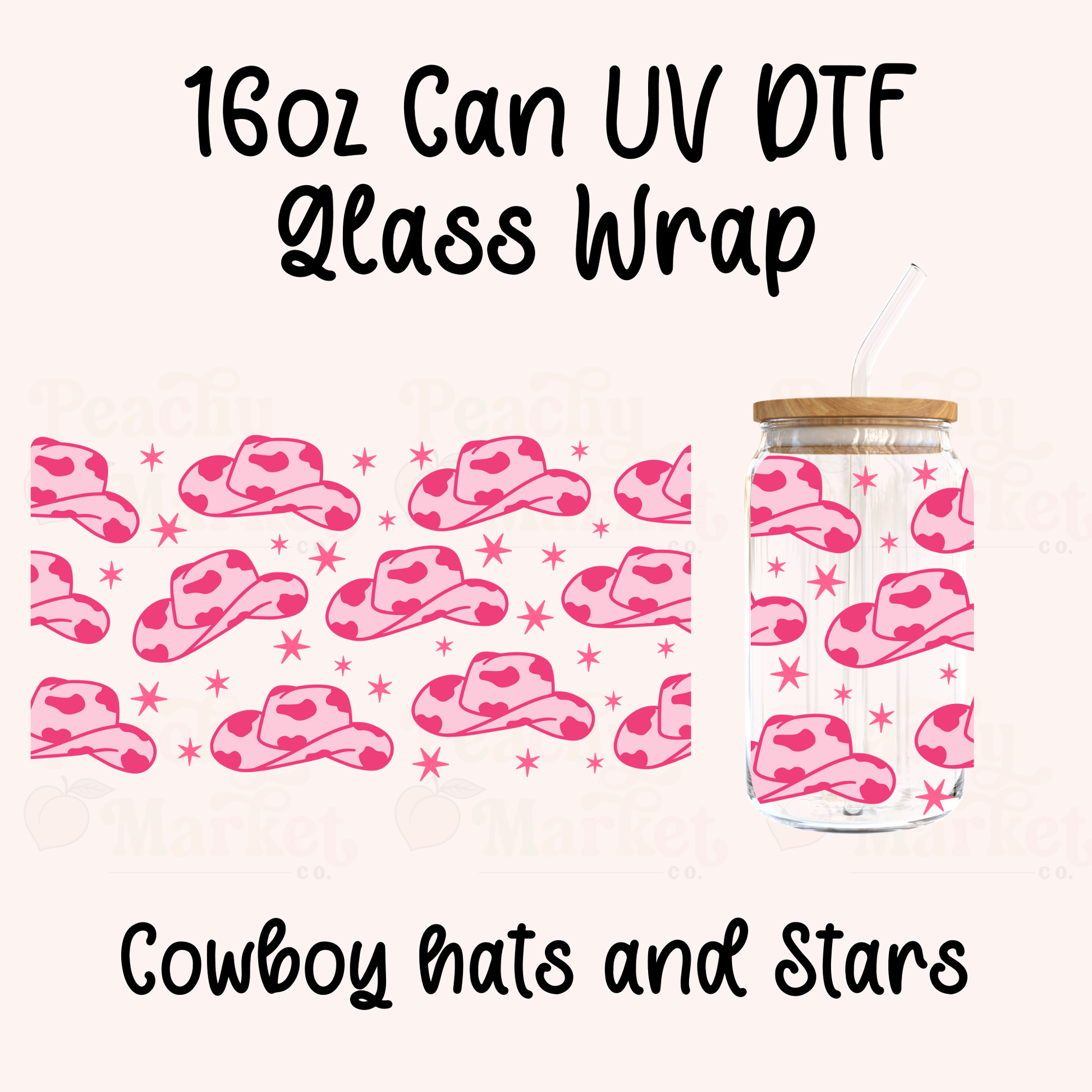 Cowboy Hats and Stars 16oz Can Glass Wrap UV DTF