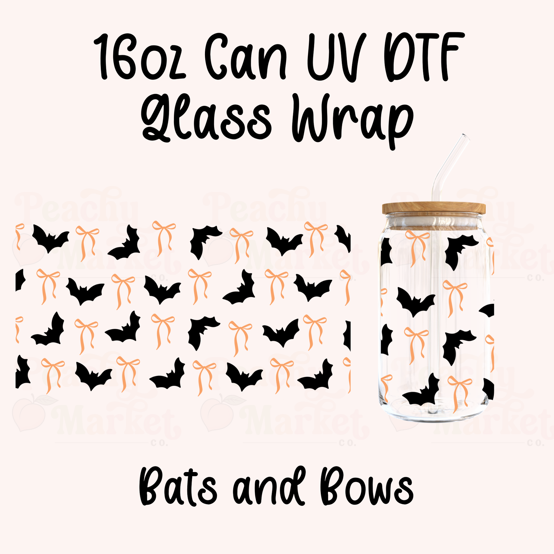 Bats and Bows 16oz Can Glass Wrap UV DTF