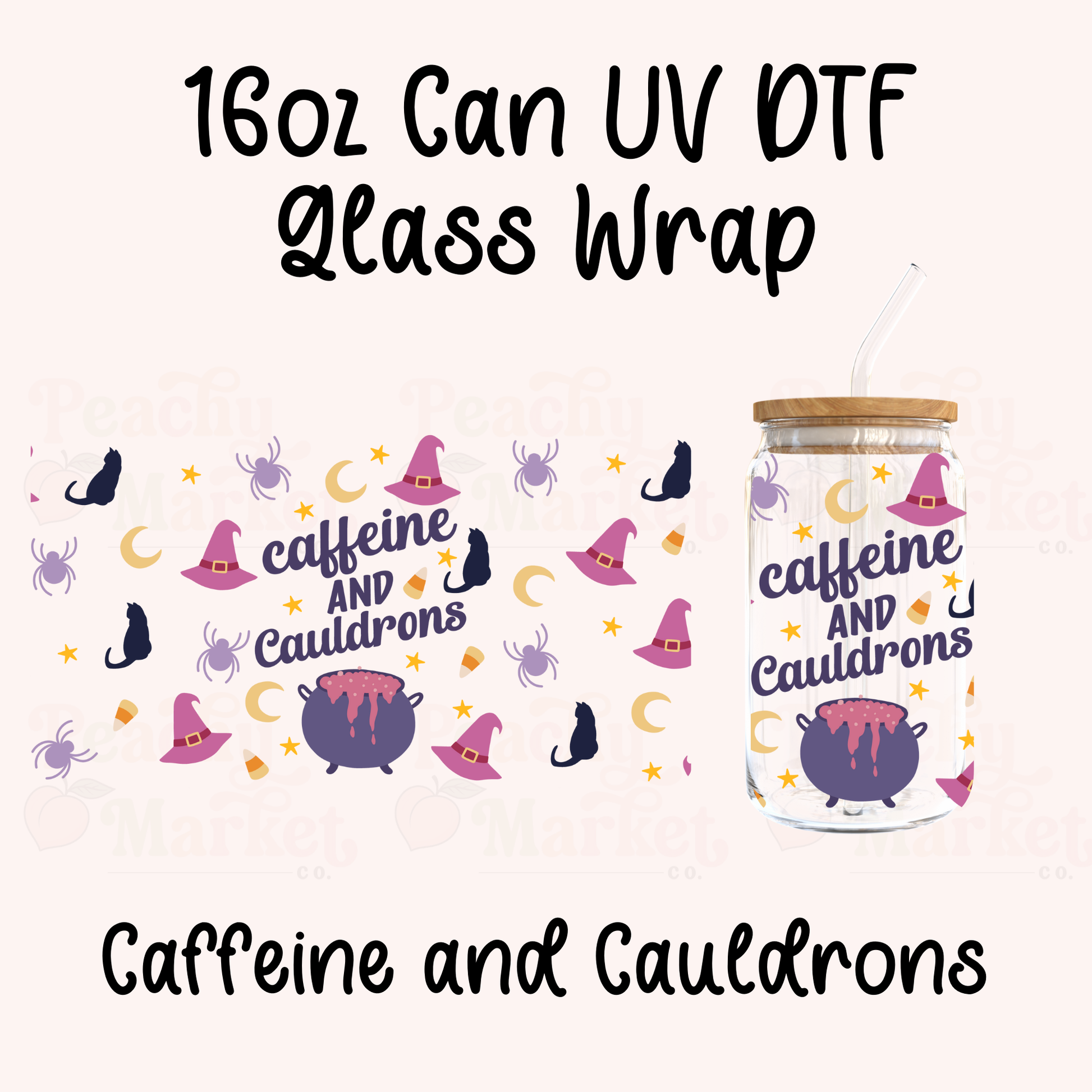 1 – Caffeine and Cauldrons 16oz Can Glass Wrap UV DTF