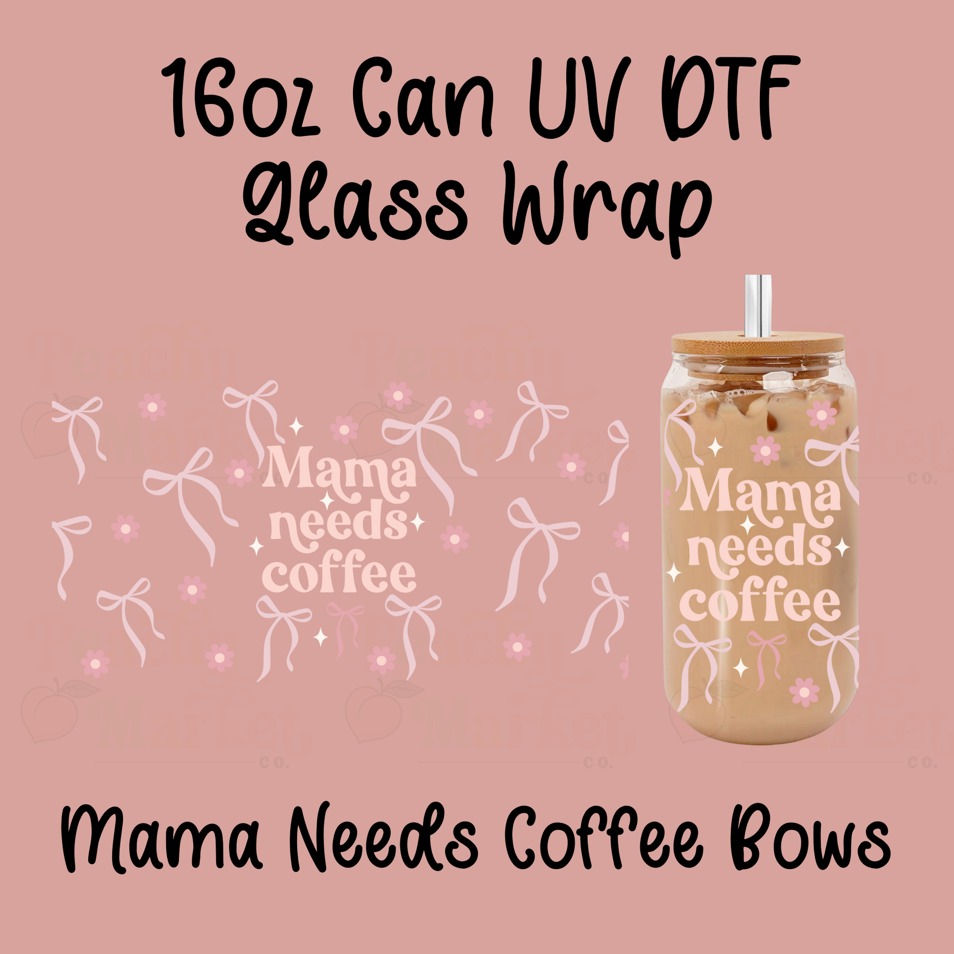 1 – Mama Needs Coffee Bows 16oz Can Glass Wrap UV DTF