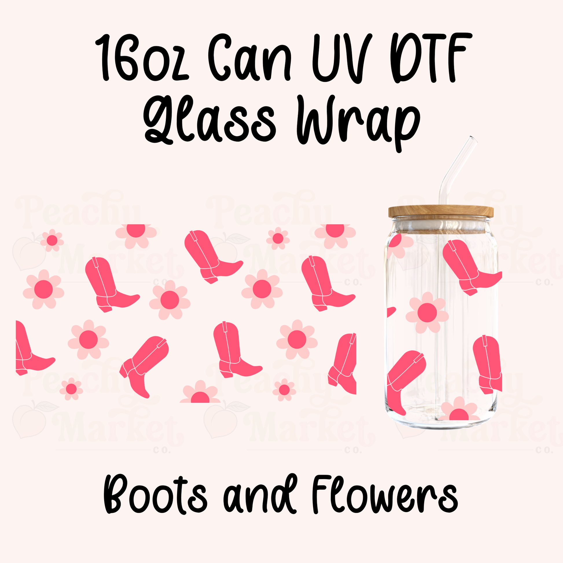 Boots and Flowers 16oz Can Glass Wrap UV DTF