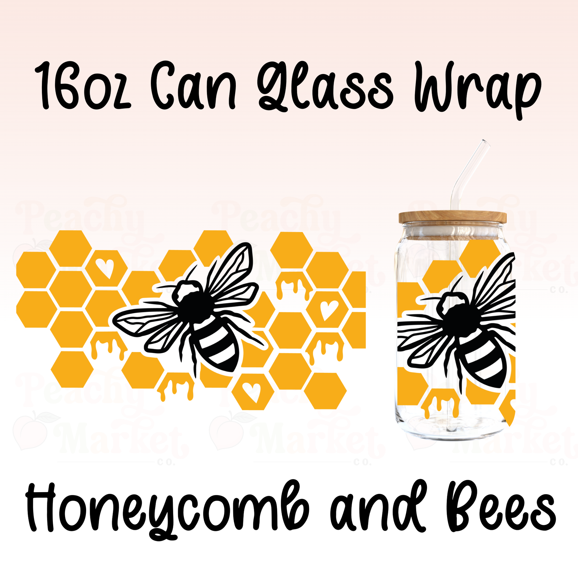 Honeycomb and Bees 16oz Can Glass Wrap Vinyl