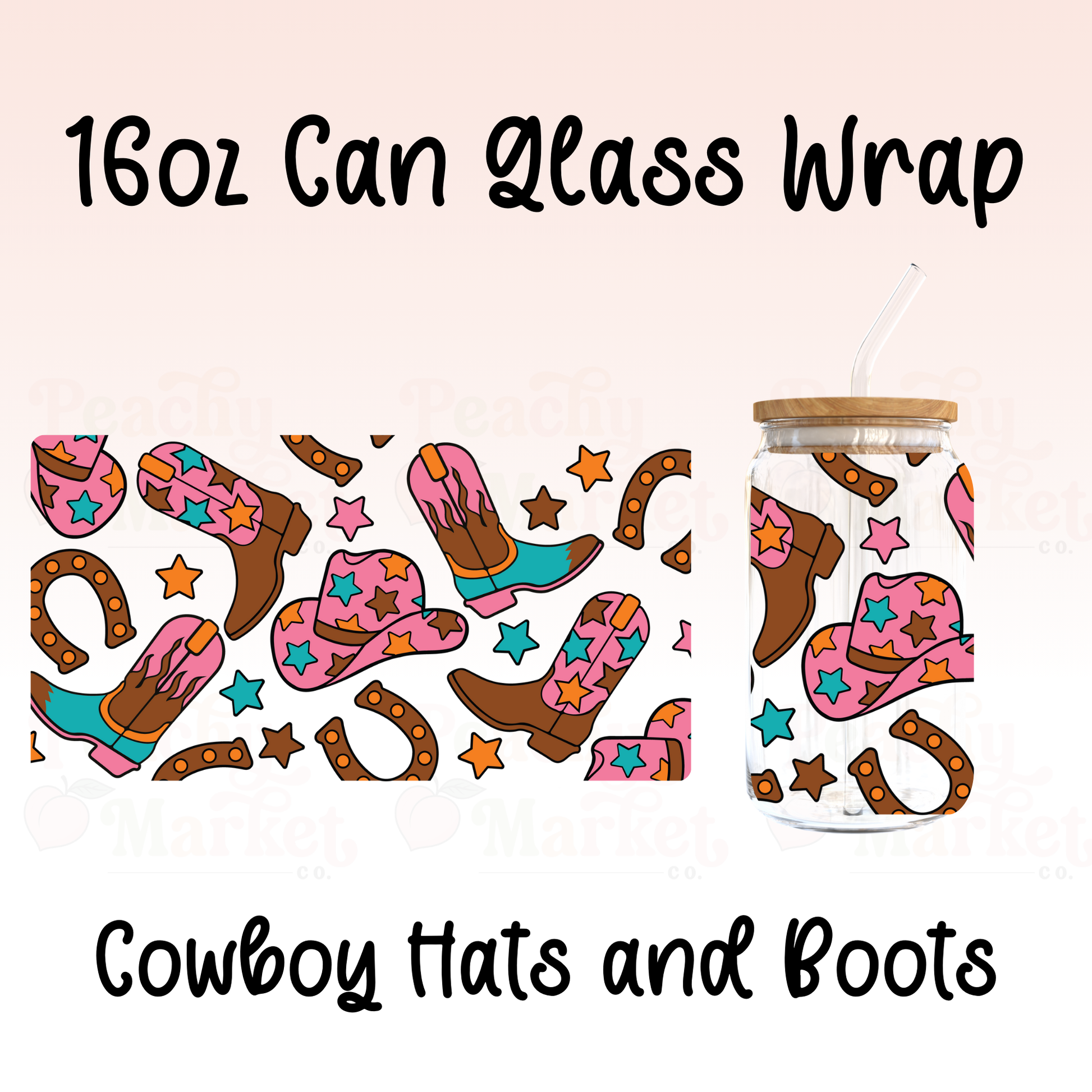 Cowboy Hats and Boots 16oz Can Glass Wrap Vinyl