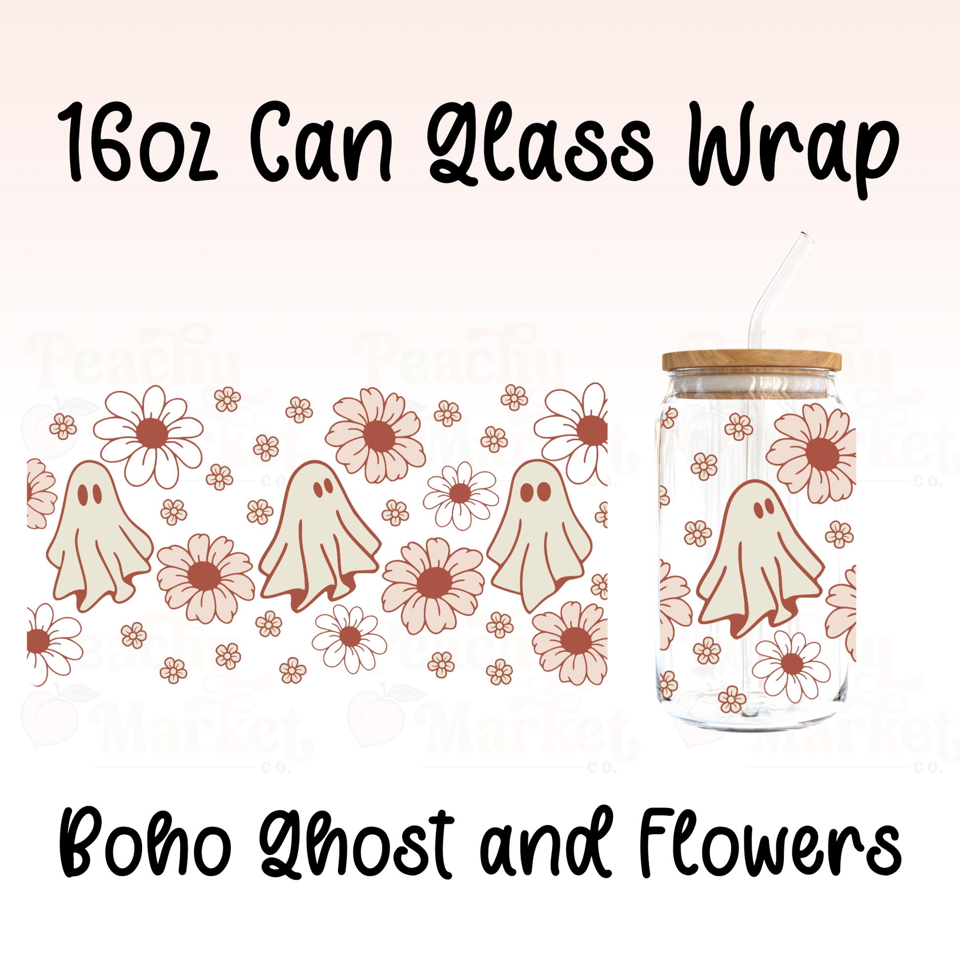 1 – Boho Ghost and Flowers 16oz Can Glass Wrap Vinyl