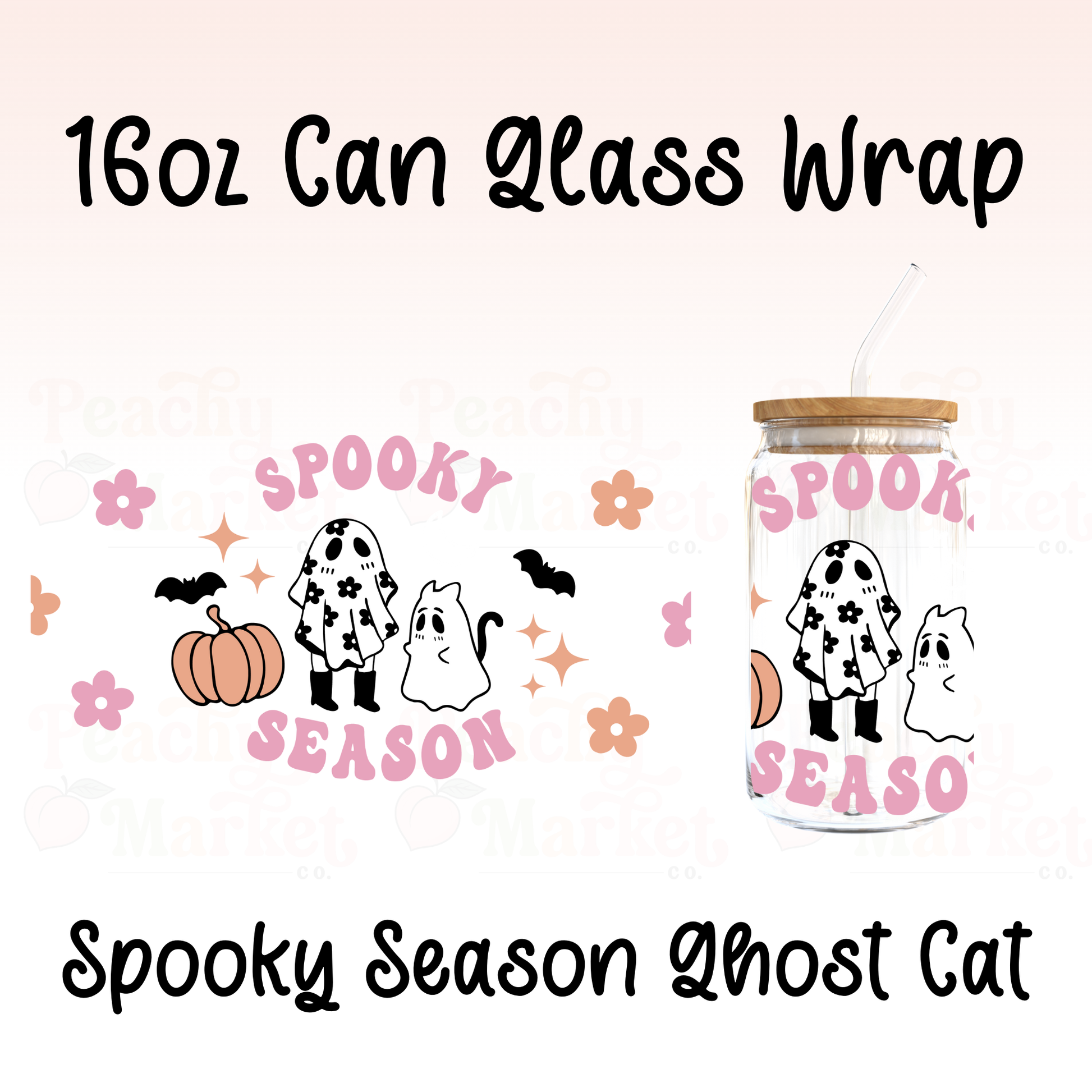 Spooky Season Ghost Cat 16oz Can Glass Wrap Vinyl