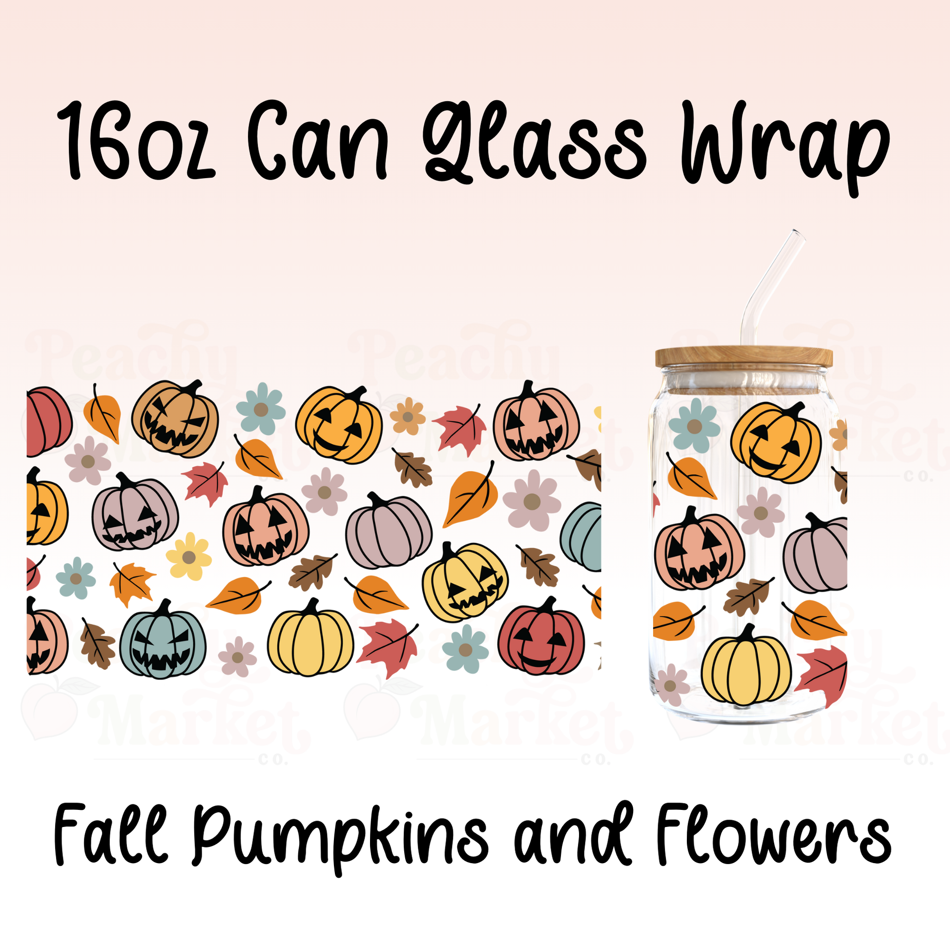1 – Fall Pumpkin and Flowers 16oz Can Glass Wrap Vinyl