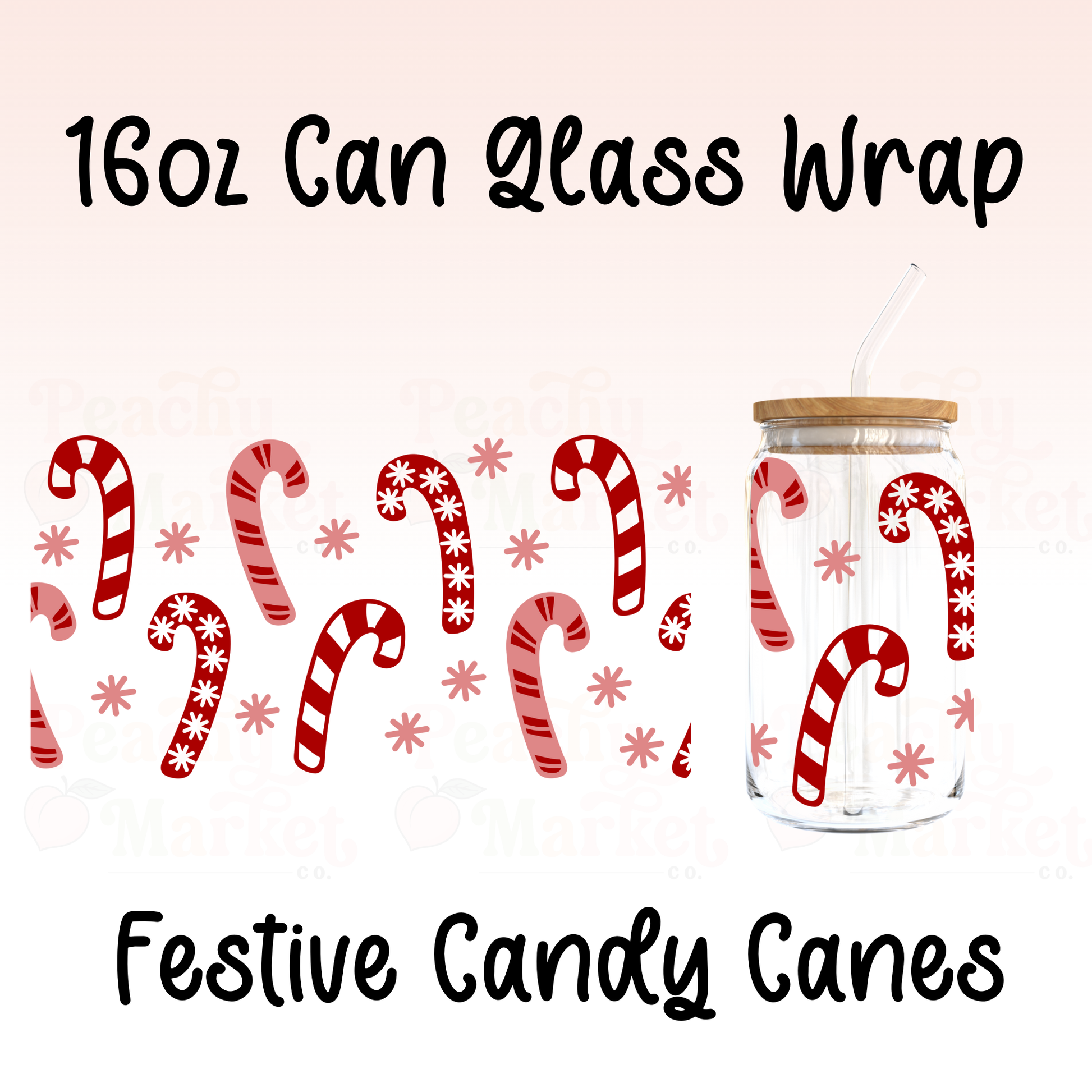 Festive Candy Canes 16oz Can Glass Wrap Vinyl