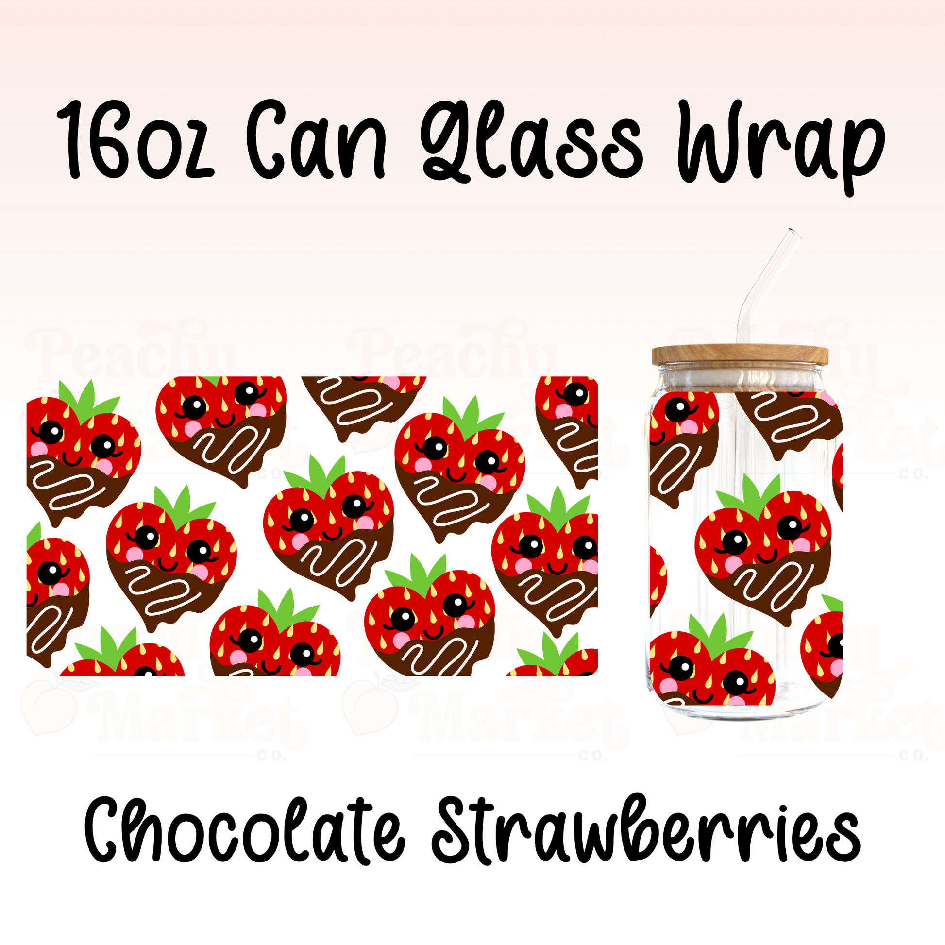 Chocolate Strawberries 16oz Can Glass Wrap Vinyl