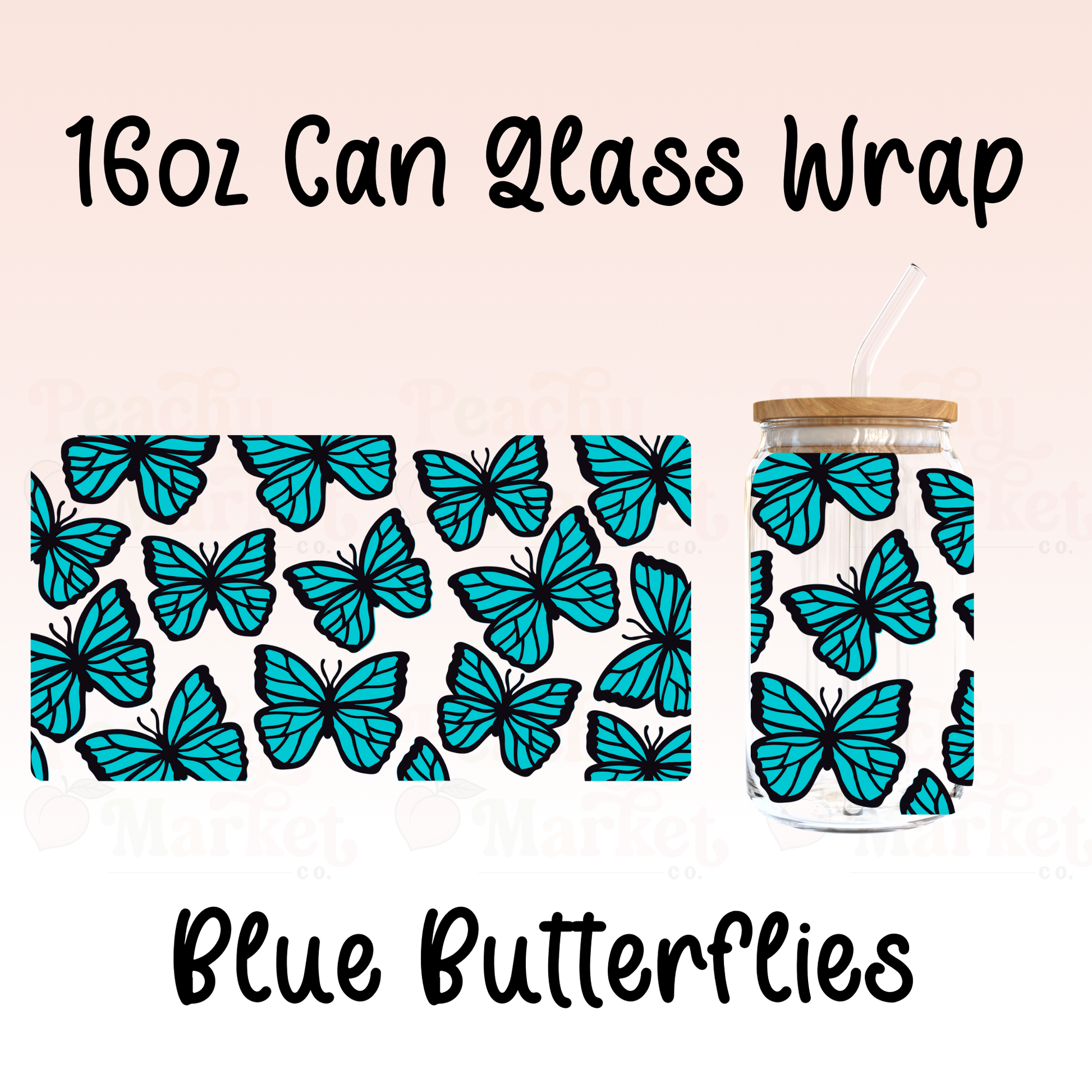 Blue Butterflies 16oz Can Glass Wrap Vinyl
