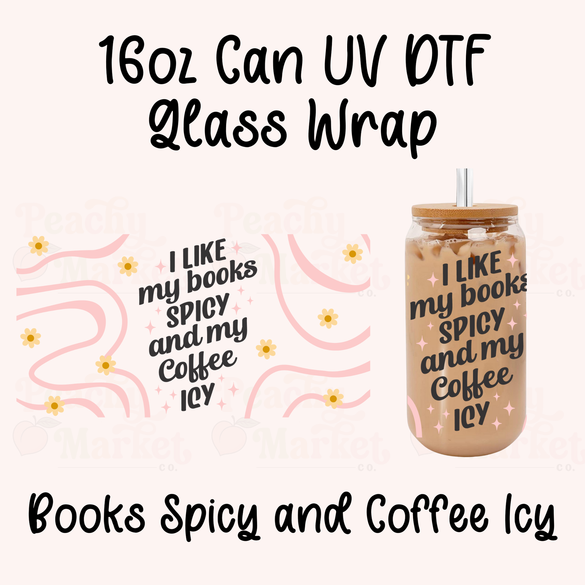 1 – Books Spicy and Coffee Icy 16oz Can Glass Wrap UV DTF