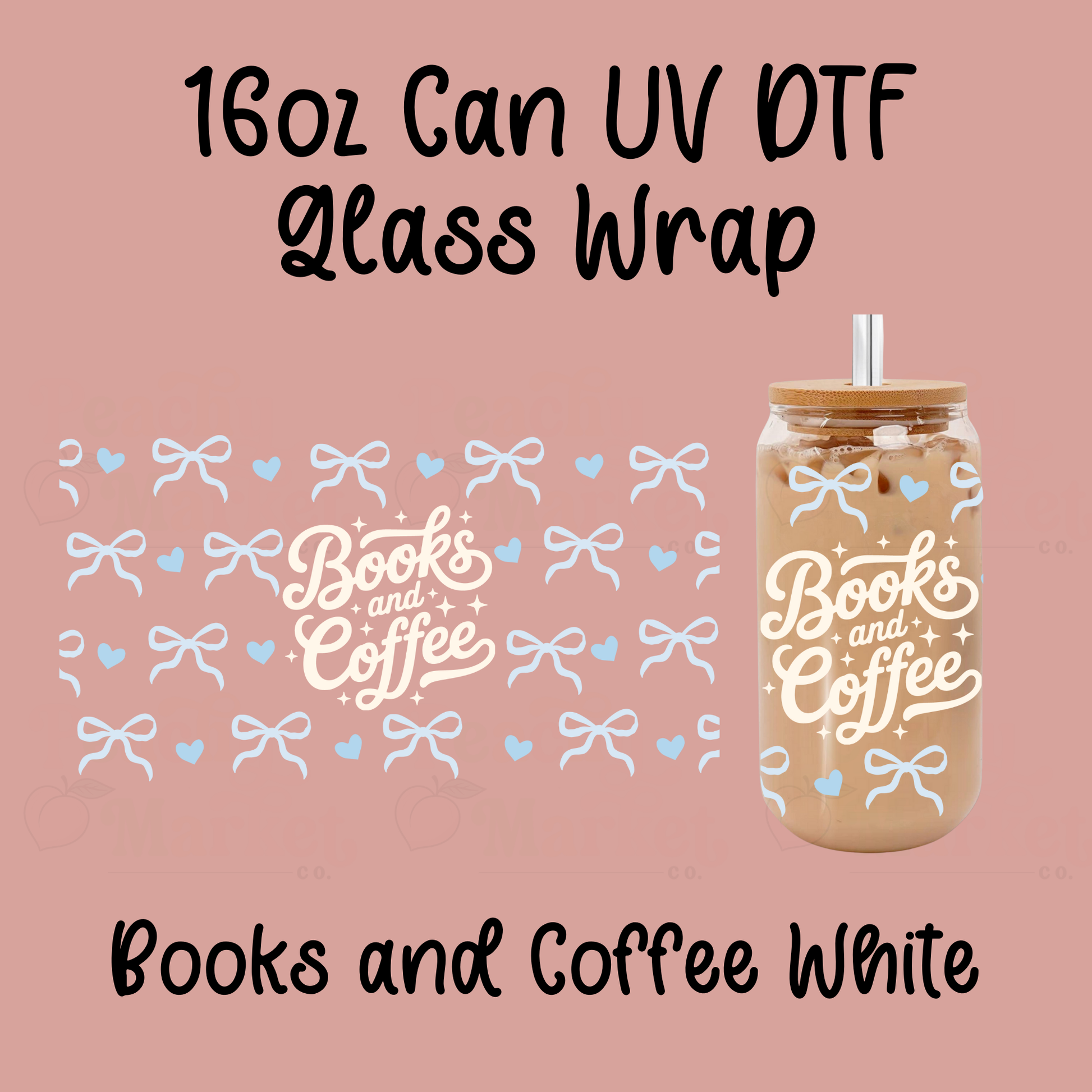 Books and Coffee 16oz Can Glass Wrap UV DTF