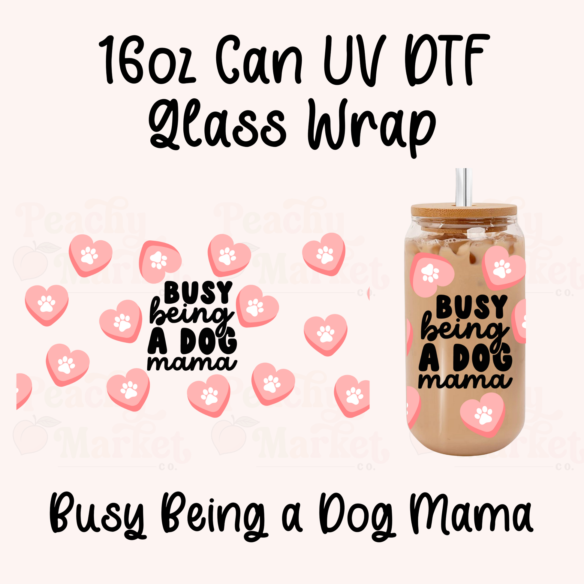 1 – Busy Being a Dog Mama 16oz Can Glass Wrap UV DTF