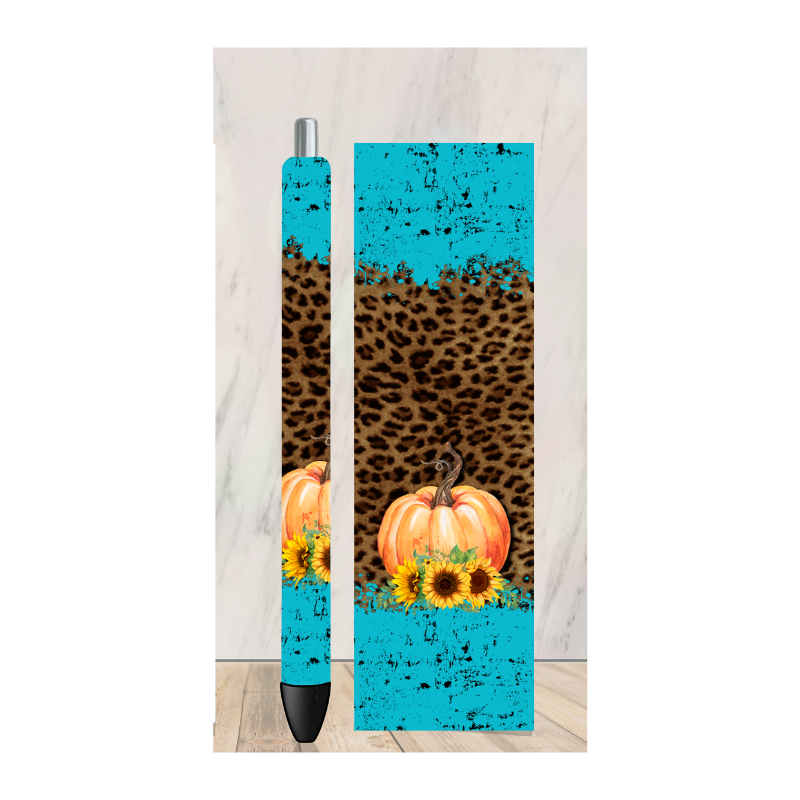 Teal and Cheetah Pumpkin Pen Wrap