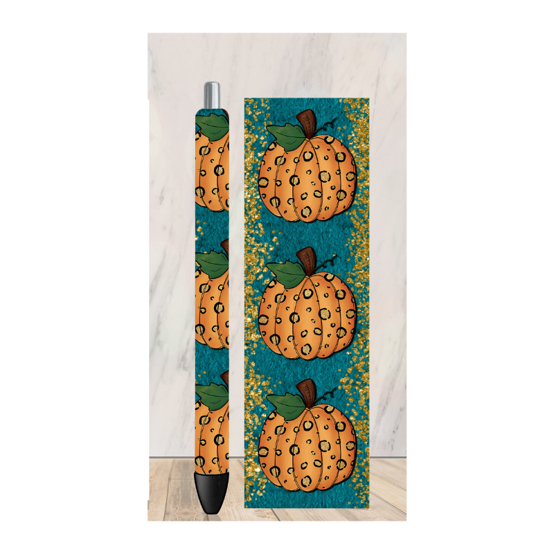 1 – Cheetah Pumpkin Teal Pen Wrap