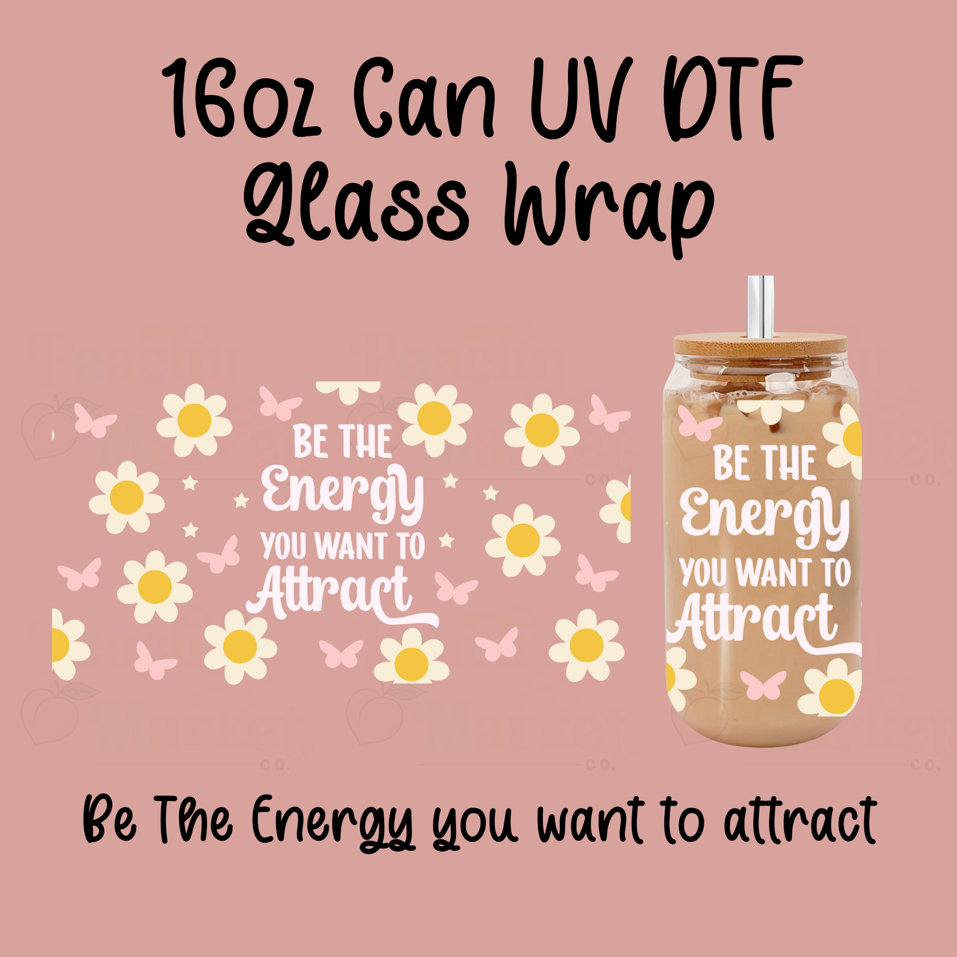 1 – Be The Energy You Want To Attract white ink 16oz Can Glass Wrap UV DTF